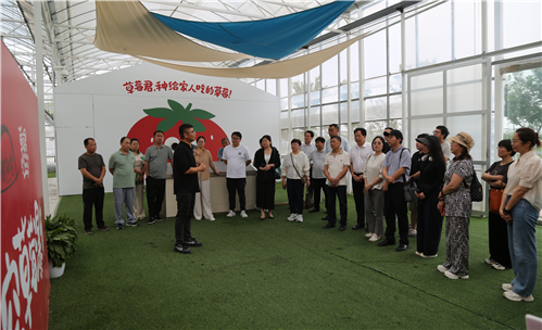 学习交流期间,首站来到杭州临平塘栖“草莓君”种植园,实地观摩现代农业科技与文旅融合的运营范式。园区内智能滴灌系统与立体栽培技术构建起标准化种植体系,其将草莓种植与消费研学、休闲观光深度融合,通过文化故事包装、IP形象塑造和全渠道推广,打造集采摘体验、科普教育、网红打卡于一体的产业链条,为淳安季节性水果从初级农产品向体验型消费IP的价值跃升提供了实践参考。