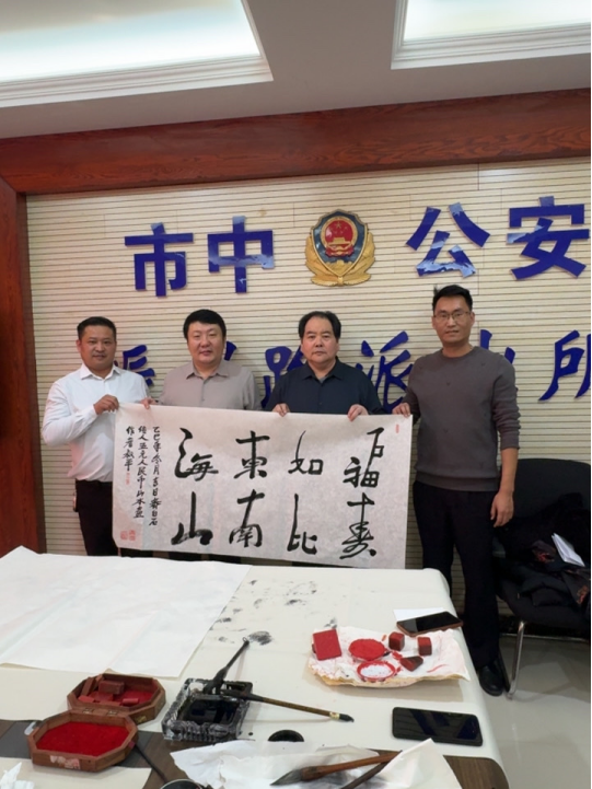 现场,民警们或围拢在书画家身旁,凝神观摩创作过程,感受笔墨韵律;或趁创作间隙,与艺术家们交流心得,请教书画鉴赏与入门知识。欢声笑语此起彼伏,浓郁的墨香与真挚的暖意相互交织,共同构成了一幅警民和谐、文化交融的生动画卷。这场景,超越了简单的文化交流,更是一次心灵的对话与情感的共鸣。