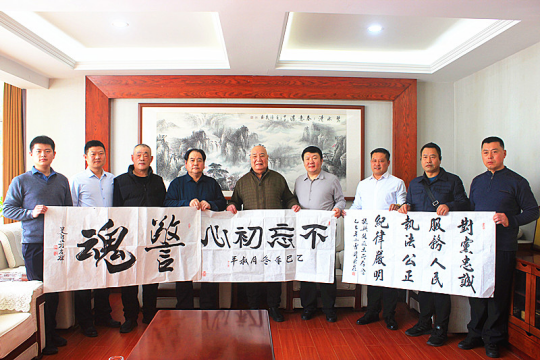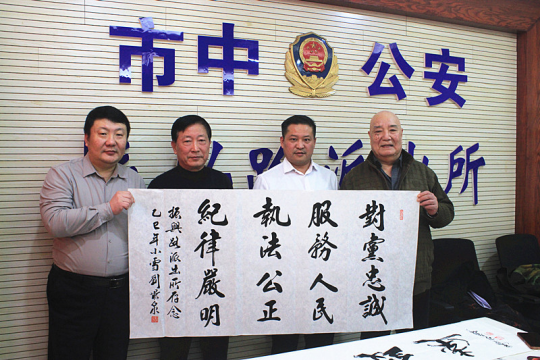 书法家刘啸泉先生其作品《对党忠诚、服务人民、执法公正、纪律严明》、《执法为民》,在朴拙中见灵动,在传统中显创新,书写的内容多与警营格言、从警初心相关,令人耳目一新。