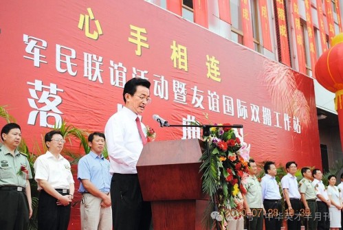 2010年7月28日,在军民联谊活动暨友谊国际双拥工作站落成典礼现场,陈吕荣发表致辞