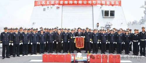 陈吕荣一行赴中国人民解放军海军北海舰队临沂舰慰问,全体官兵举行欢迎仪式