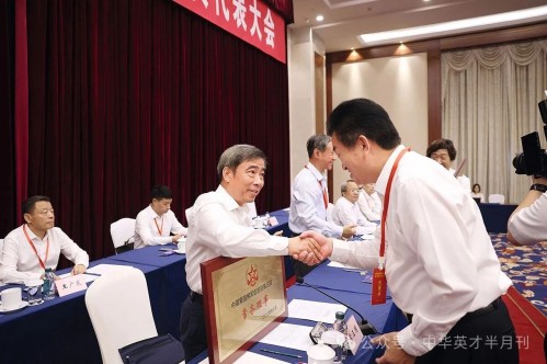 陈吕荣当选中国爱国拥军促进会第三届理事会常务理事,图为陈吕荣与时任退役军人事务部党组成员、副部长常正国握手并接过授牌
