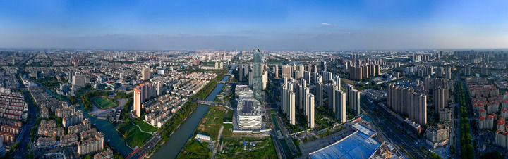 这是10月9日拍摄的昆山城区(无人机拼接照片)。新华社记者 李博 摄